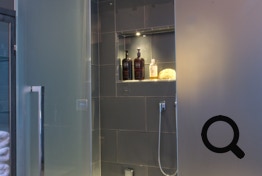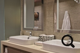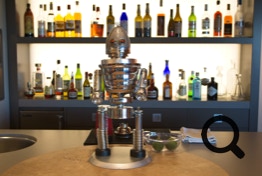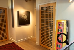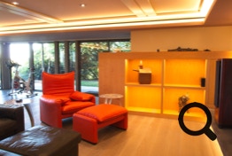 Downstairs, things get more intimate, with guest bedrooms, an entertainment room and bar.